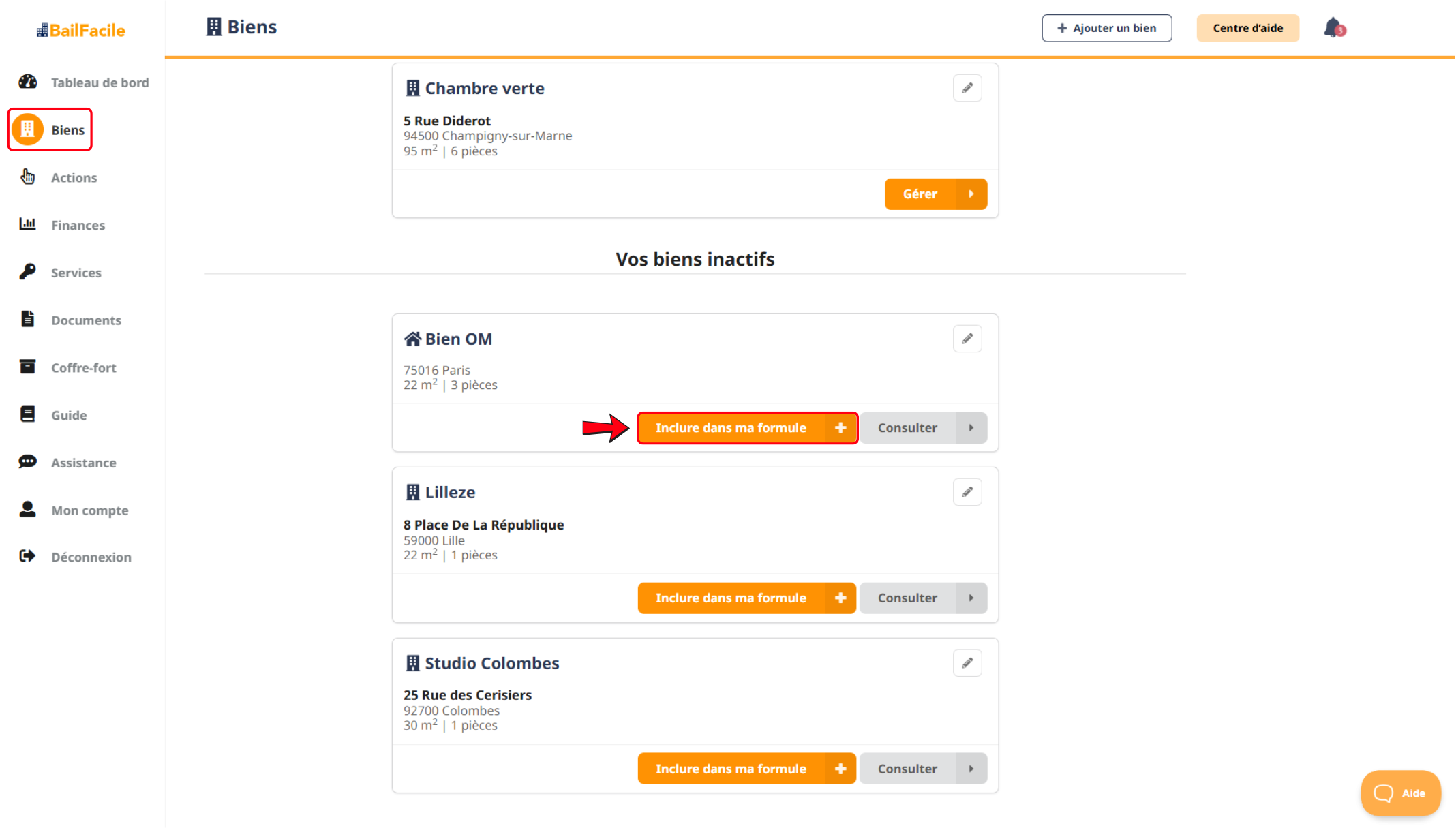 Il est tout à fait possible de réactiver un bien inactif pour l’inclure dans votre formule et reprendre la gestion de votre location sur BailFacile.