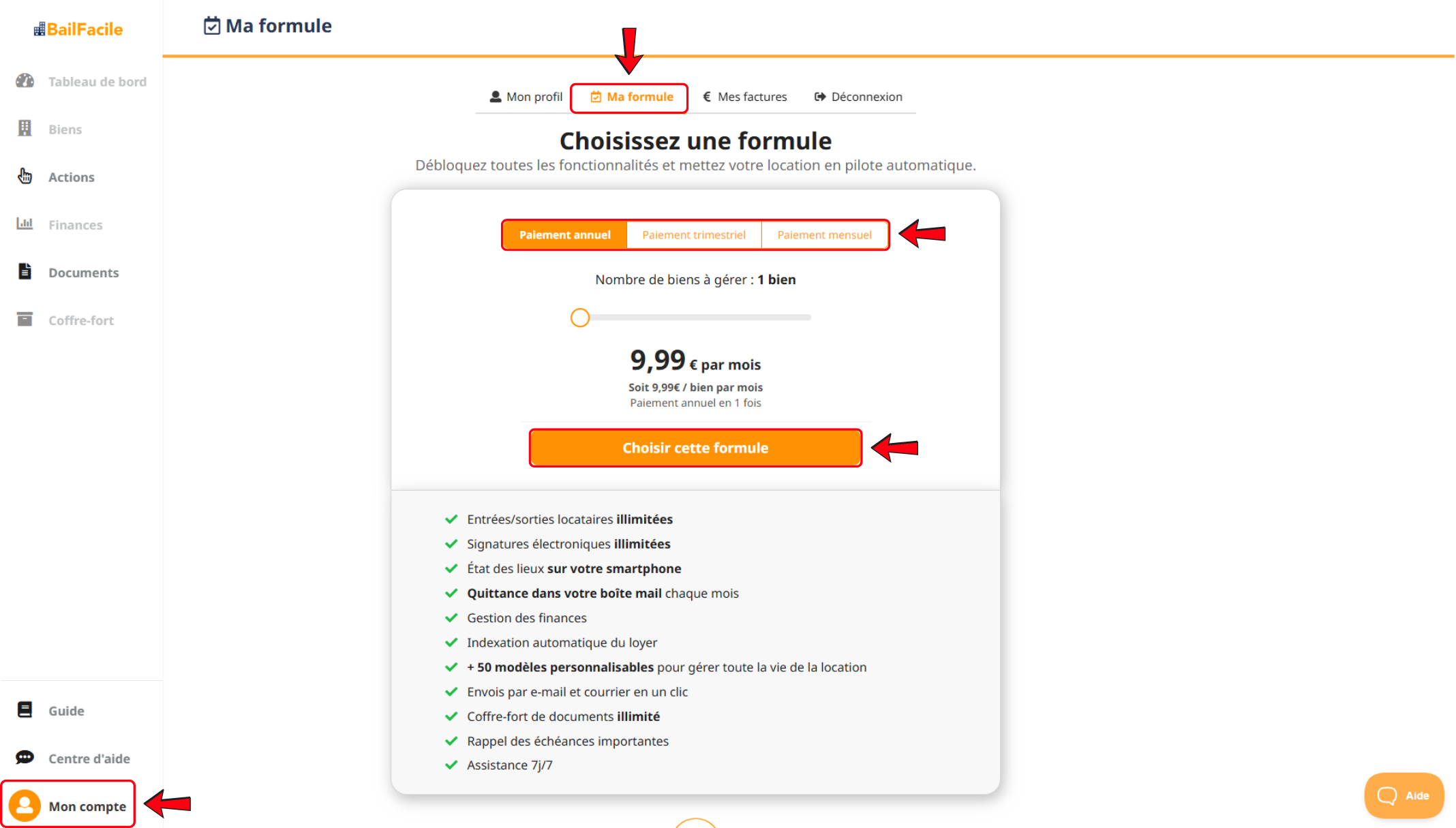 Choisissez l’offre qui vous convient - bougez le curseur en avant si vous avez plus d'un bien - puis cliquez sur "Choisir cette formule".
