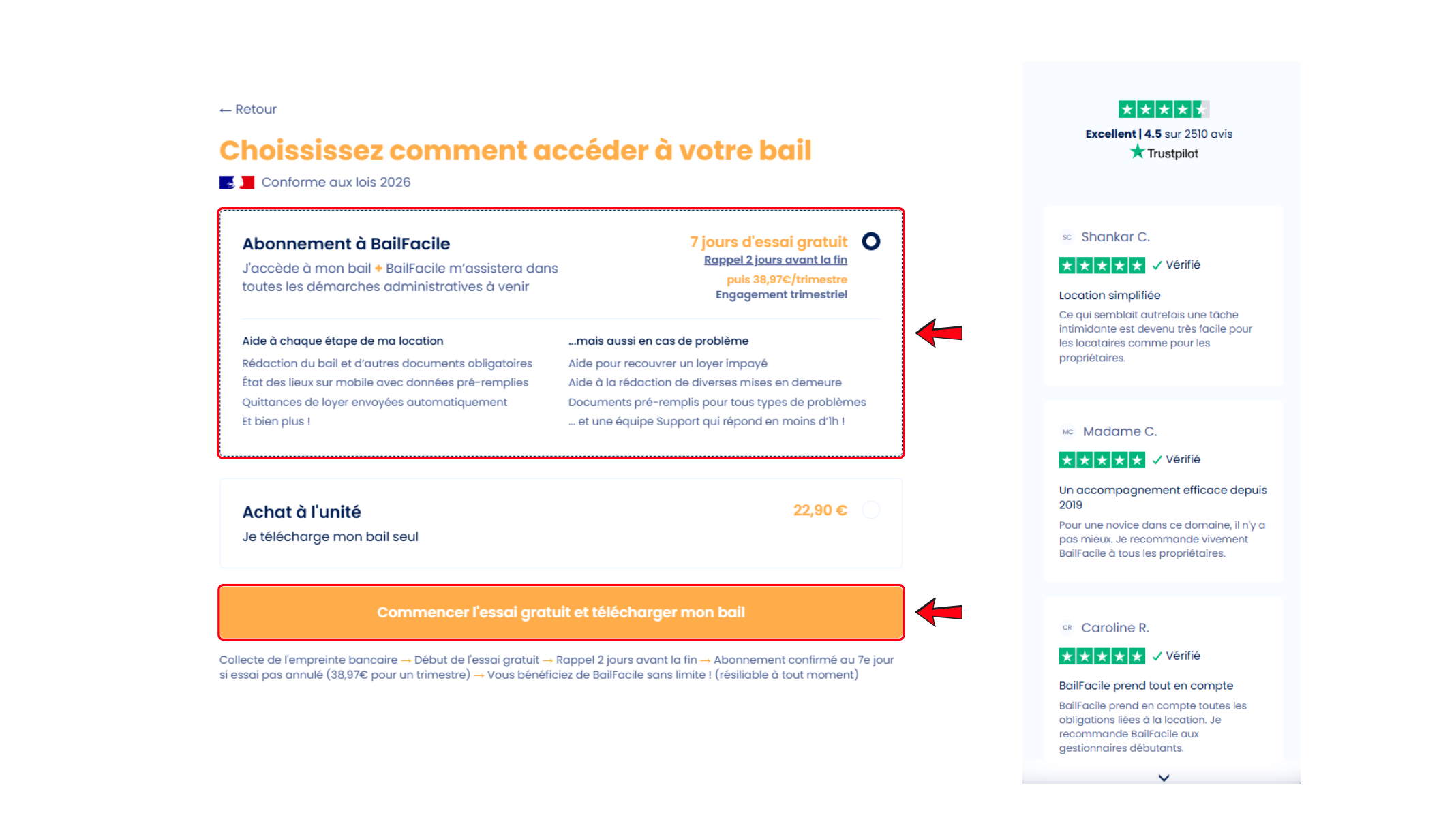 2 - Choisissez la période d'essai et laissez-vous guider