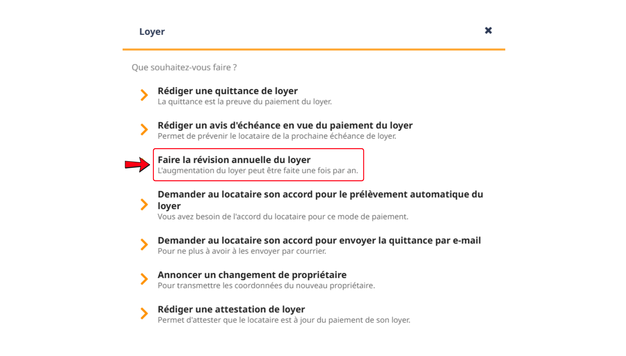 2 - Choisissez "Faire la révision annuelle du loyer" et complétez le formulaire jusqu'à la fin