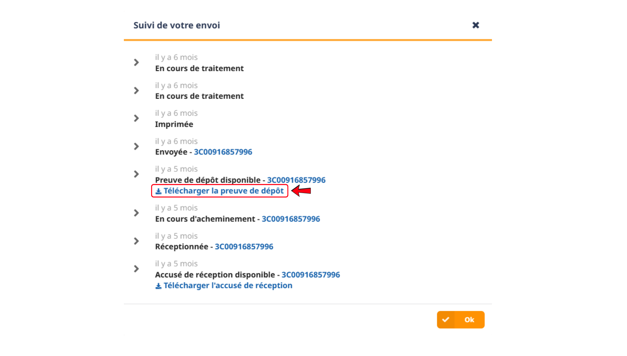 3 - Et récupérez le document via le bouton "Télécharger la preuve de dépôt"