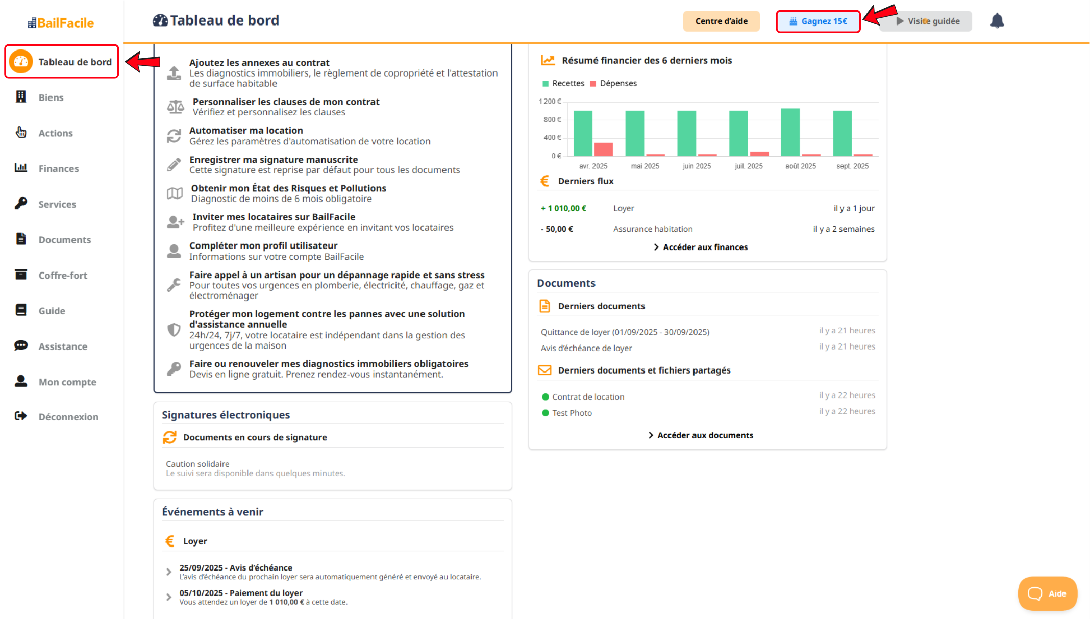 En parrainant un proche, vous recevez 15€ de crédit BailFacile, et votre filleul bénéficie également de 15€ offerts.