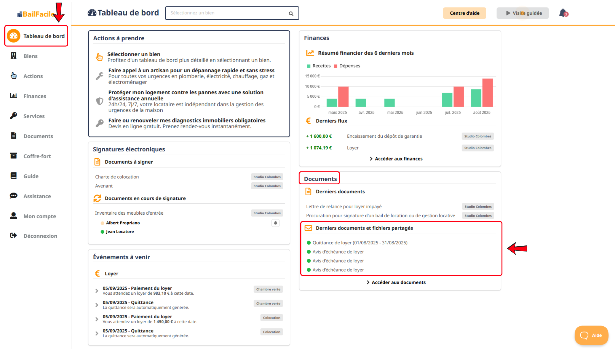 1 - Rendez-vous sur votre tableau de bord et retrouvez les documents partagés en bas à droite
